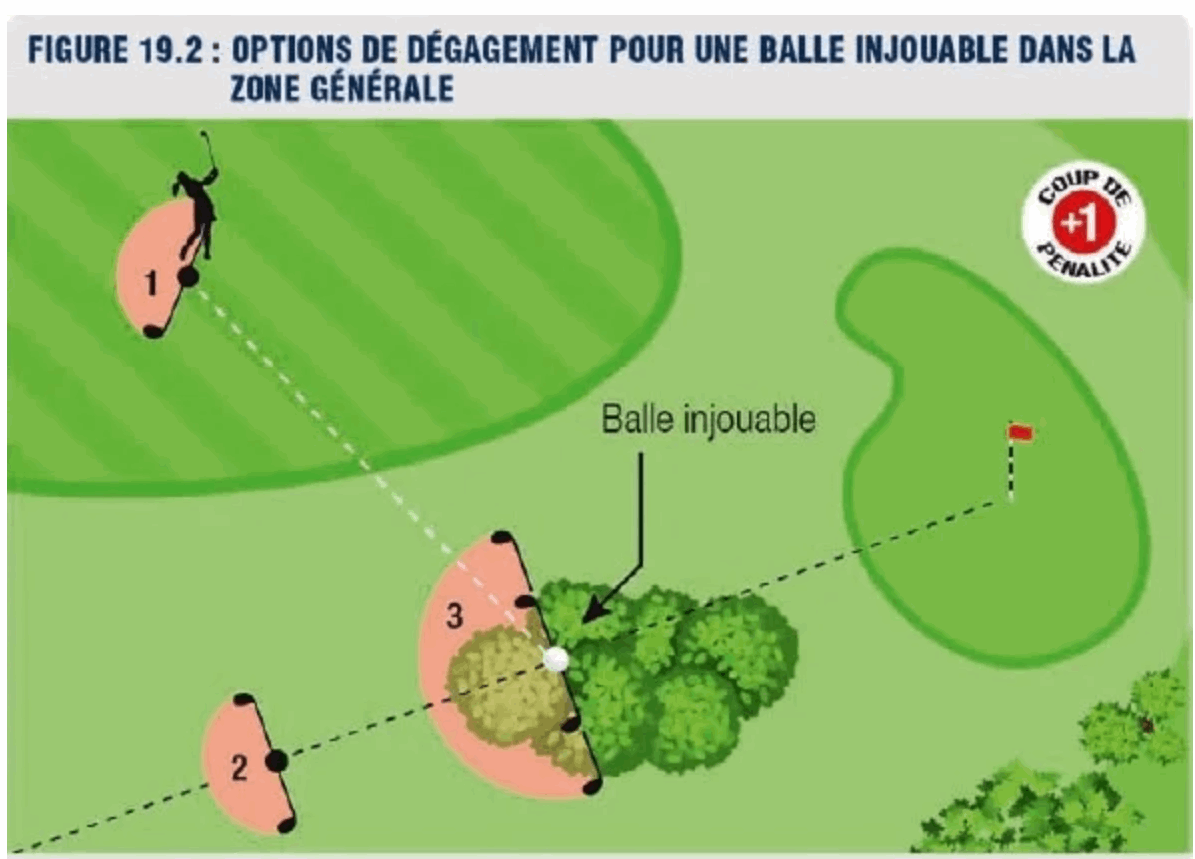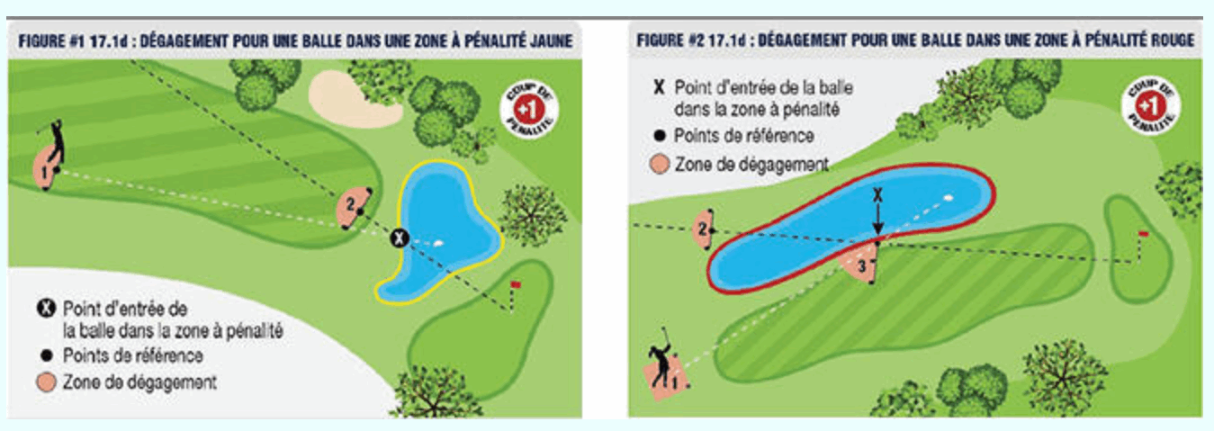 définies par des piquets rouges ou des piquets jaunes ces zones à pénalité ne doivent plus forcément contenir de l’eauBalle injouable
