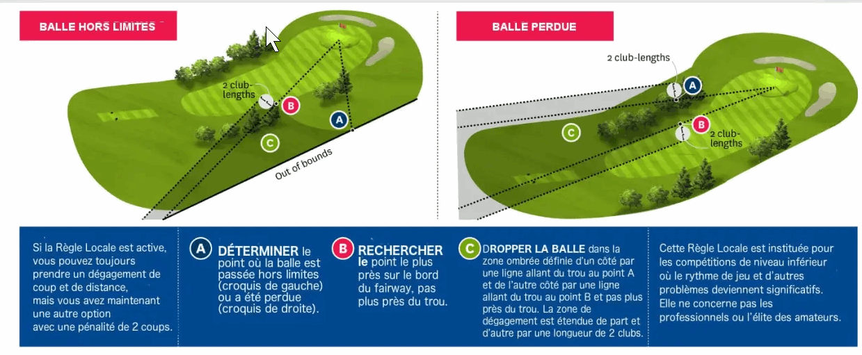 Une Règle Locale pourra être introduite pour éviter la pénalité de coup et de distance en cas de balle perdue ou de balle passée hors limite. Elle évitera de retourner à l’endroit de la frappe pour rejouer.